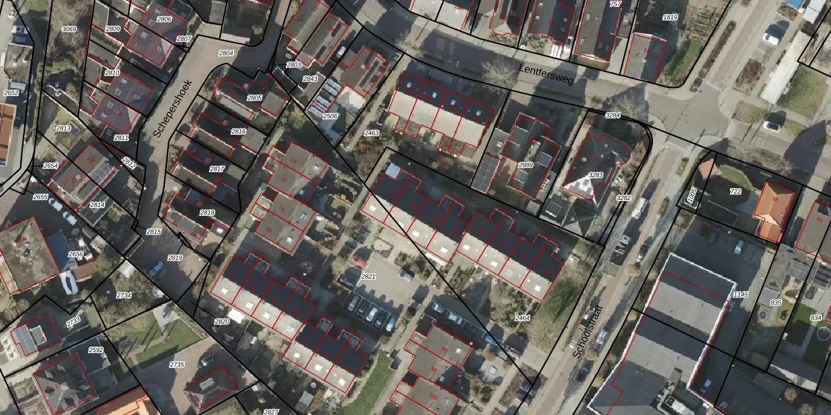 Het perceel waarop Schoolstraat 70 staat heeft een oppervlakte van 1400 m². Dit is een zeer groot perceel. De perceeloppervlakte wordt geregistreerd door het Kadaster. Gedetailleerde informatie over de maten van dit perceel kunt u vinden in het rapport Kadastrale kaart met maatvoering van Schoolstraat 70.