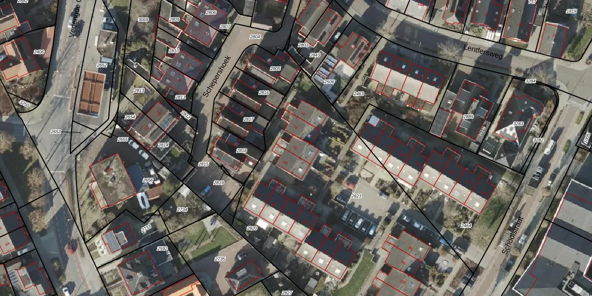 Het perceel waarop Schoolstraat 78 staat heeft een oppervlakte van 3993 m². Dit is een zeer groot perceel. De perceeloppervlakte wordt geregistreerd door het Kadaster. Gedetailleerde informatie over de maten van dit perceel kunt u vinden in het rapport Kadastrale kaart met maatvoering van Schoolstraat 78.