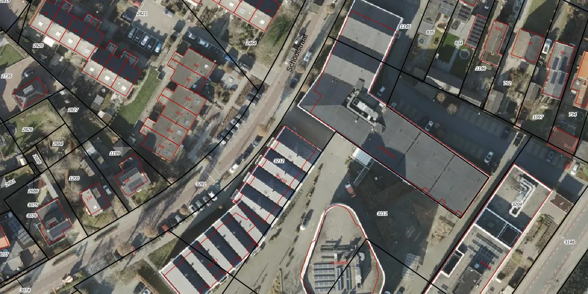 Het perceel waarop Schoolstraat 81 staat heeft een oppervlakte van 2685 m². Dit is een zeer groot perceel. De perceeloppervlakte wordt geregistreerd door het Kadaster. Gedetailleerde informatie over de maten van dit perceel kunt u vinden in het rapport Kadastrale kaart met maatvoering van Schoolstraat 81.