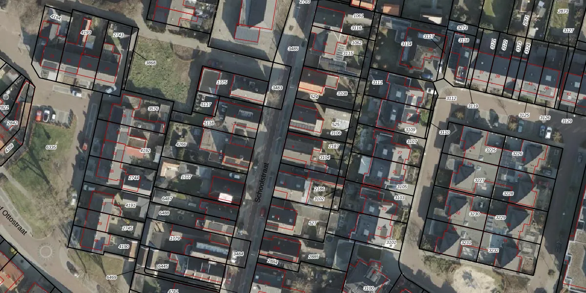 Gebruik de zoekbalk of klik op een perceel voor informatie over de adressen binnen dit perceel.