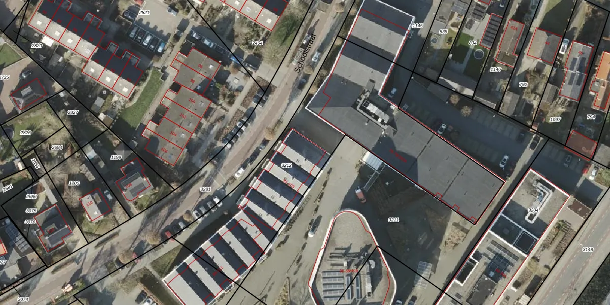 Het perceel waarop Schoolstraat 97 staat heeft een oppervlakte van 2685 m². Dit is een zeer groot perceel. De perceeloppervlakte wordt geregistreerd door het Kadaster. Gedetailleerde informatie over de maten van dit perceel kunt u vinden in het rapport Kadastrale kaart met maatvoering van Schoolstraat 97.