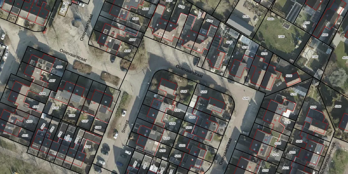 Gebruik de zoekbalk of klik op een perceel voor informatie over de adressen binnen dit perceel.