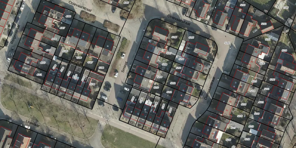 Het perceel waarop Smient 7 staat heeft een oppervlakte van 213 m². Dit is een middelgroot perceel. De perceeloppervlakte wordt geregistreerd door het Kadaster. Gedetailleerde informatie over de maten van dit perceel kunt u vinden in het rapport Kadastrale kaart met maatvoering van Smient 7.