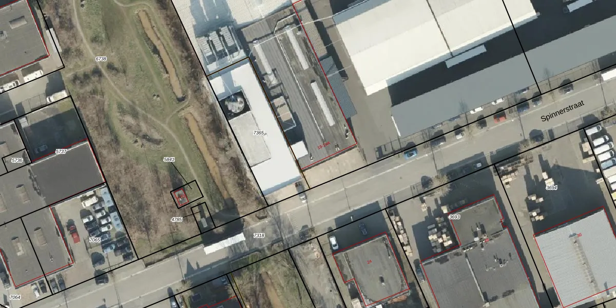 Het perceel waarop Spinnerstraat 19-A staat heeft een oppervlakte van 9318 m². Dit is een zeer groot perceel. De perceeloppervlakte wordt geregistreerd door het Kadaster. Gedetailleerde informatie over de maten van dit perceel kunt u vinden in het rapport Kadastrale kaart met maatvoering van Spinnerstraat 19-A.