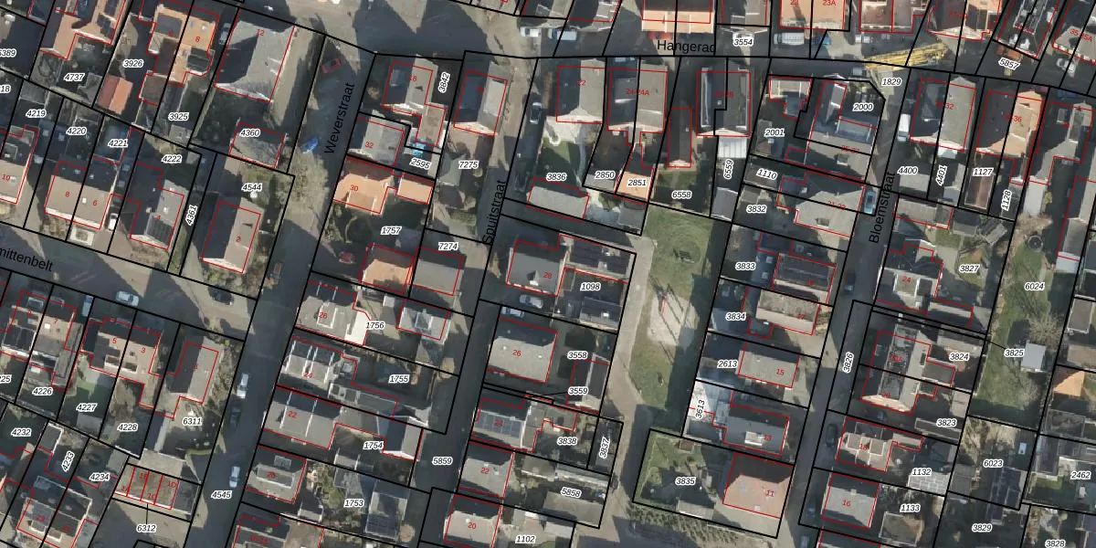 Gebruik de zoekbalk of klik op een perceel voor informatie over de adressen binnen dit perceel.