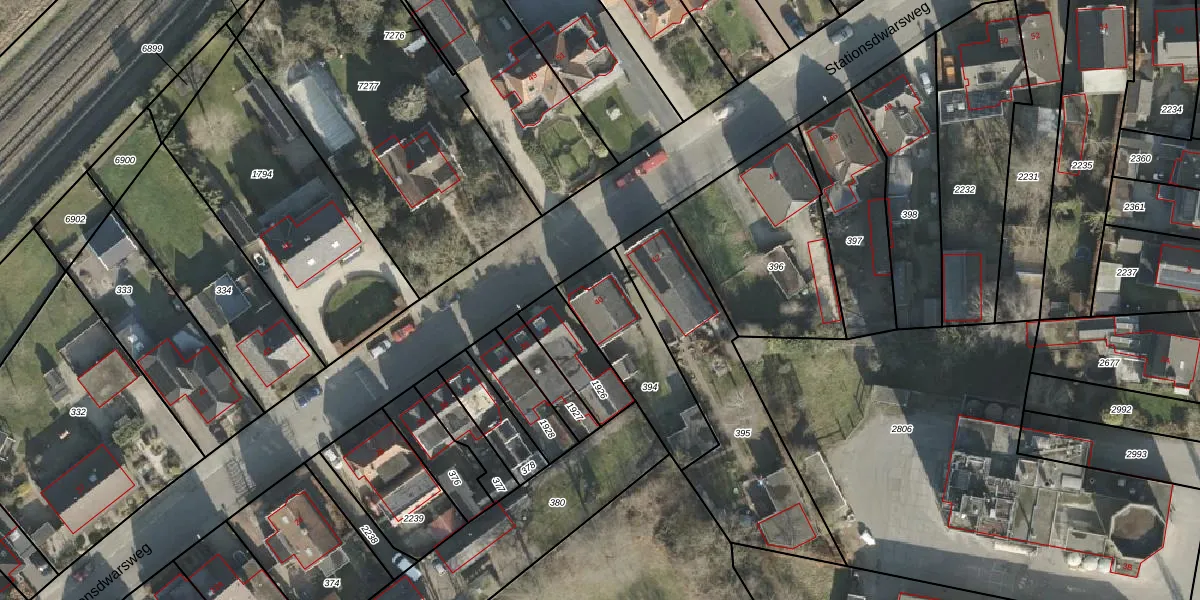 Het perceel waarop Stationsdwarsweg 40 staat heeft een oppervlakte van 370 m². Dit is een groot perceel. De perceeloppervlakte wordt geregistreerd door het Kadaster. Gedetailleerde informatie over de maten van dit perceel kunt u vinden in het rapport Kadastrale kaart met maatvoering van Stationsdwarsweg 40.
