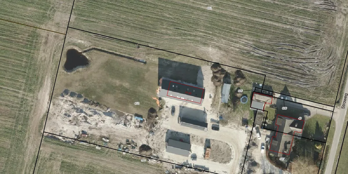 Stroweg 1-B is gelegen op kadastraal perceel RSN01L612. Deze kadastrale aanduiding is uniek en wordt gebruikt door het Kadaster om eigendomsrechten en andere zakelijke rechten vast te leggen. Het perceel maakt onderdeel uit van de kadastrale gemeente Rijssen.