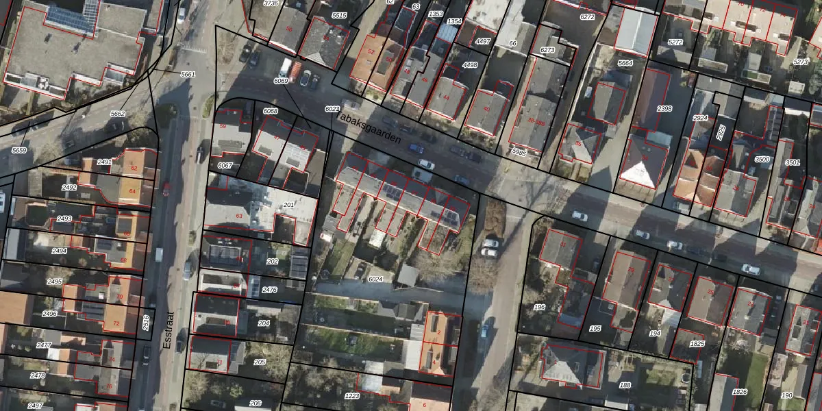 Het perceel waarop Tabaksgaarden 37 staat heeft een oppervlakte van 2033 m². Dit is een zeer groot perceel. De perceeloppervlakte wordt geregistreerd door het Kadaster. Gedetailleerde informatie over de maten van dit perceel kunt u vinden in het rapport Kadastrale kaart met maatvoering van Tabaksgaarden 37.