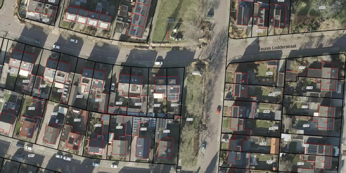 Teunis Lodderstraat 31 is gelegen op kadastraal perceel RSN01H2708. Deze kadastrale aanduiding is uniek en wordt gebruikt door het Kadaster om eigendomsrechten en andere zakelijke rechten vast te leggen. Het perceel maakt onderdeel uit van de kadastrale gemeente Rijssen.