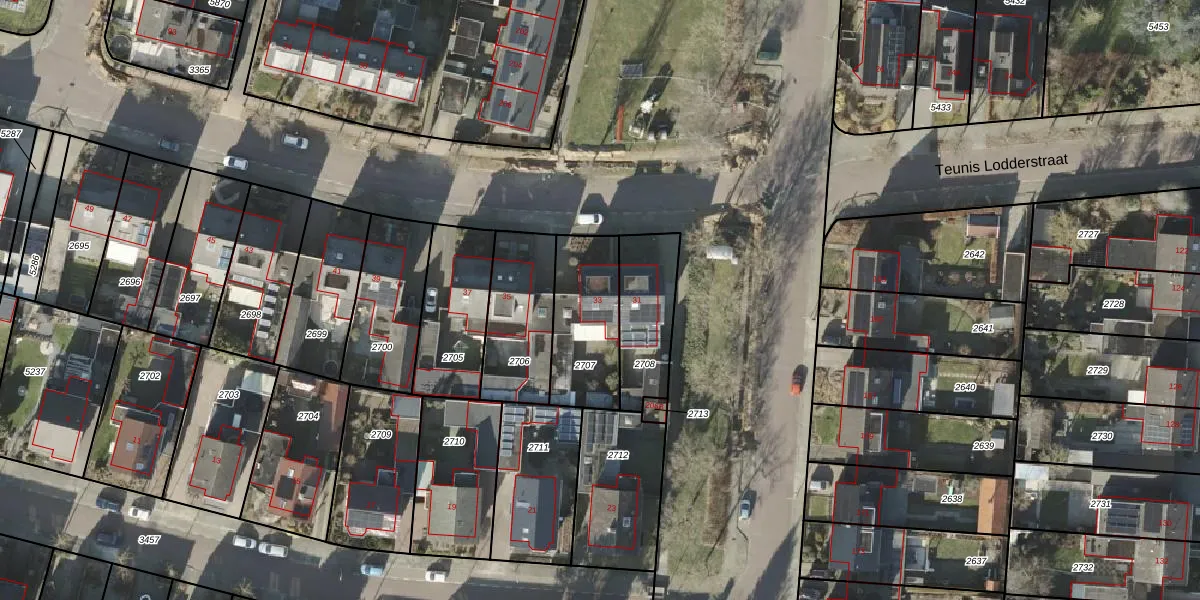 Het perceel waarop Teunis Lodderstraat 33 staat heeft een oppervlakte van 316 m². Dit is een groot perceel. De perceeloppervlakte wordt geregistreerd door het Kadaster. Gedetailleerde informatie over de maten van dit perceel kunt u vinden in het rapport Kadastrale kaart met maatvoering van Teunis Lodderstraat 33.