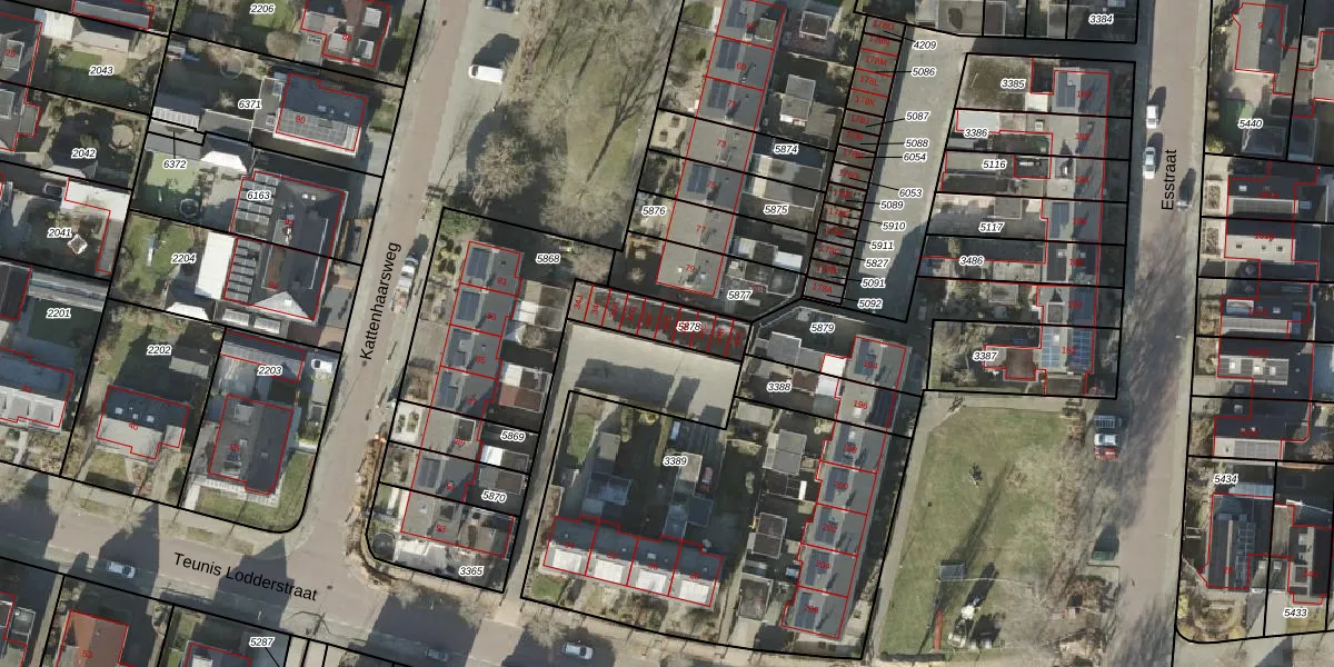 Teunis Lodderstraat 34-E is gelegen op kadastraal perceel RSN01H5878. Deze kadastrale aanduiding is uniek en wordt gebruikt door het Kadaster om eigendomsrechten en andere zakelijke rechten vast te leggen. Het perceel maakt onderdeel uit van de kadastrale gemeente Rijssen.