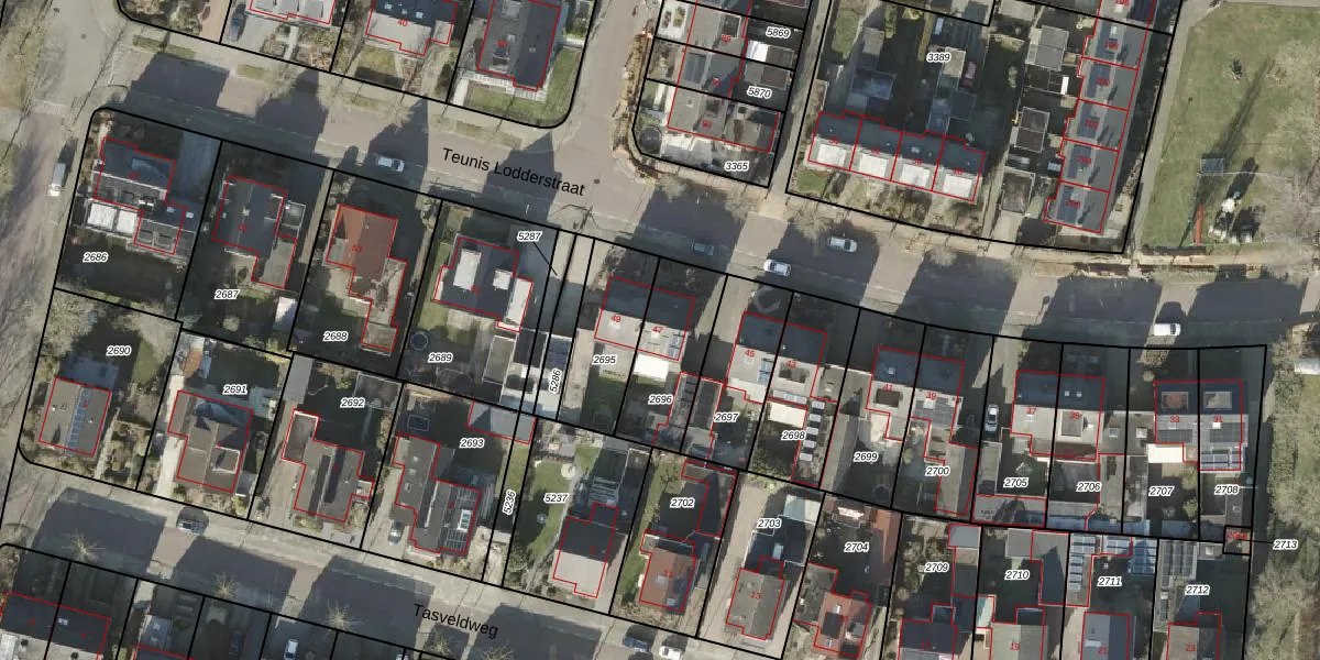 Teunis Lodderstraat 47 is gelegen op kadastraal perceel RSN01H2696. Deze kadastrale aanduiding is uniek en wordt gebruikt door het Kadaster om eigendomsrechten en andere zakelijke rechten vast te leggen. Het perceel maakt onderdeel uit van de kadastrale gemeente Rijssen.