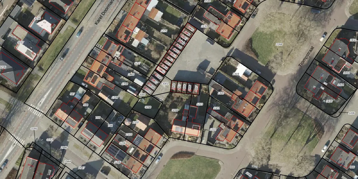 Gebruik de zoekbalk of klik op een perceel voor informatie over de adressen binnen dit perceel.