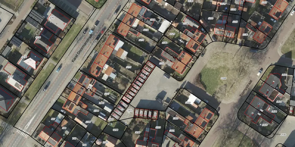 Het perceel waarop Trompstraat 21-C staat heeft een oppervlakte van 19 m². Dit is een klein perceel. De perceeloppervlakte wordt geregistreerd door het Kadaster. Gedetailleerde informatie over de maten van dit perceel kunt u vinden in het rapport Kadastrale kaart met maatvoering van Trompstraat 21-C.