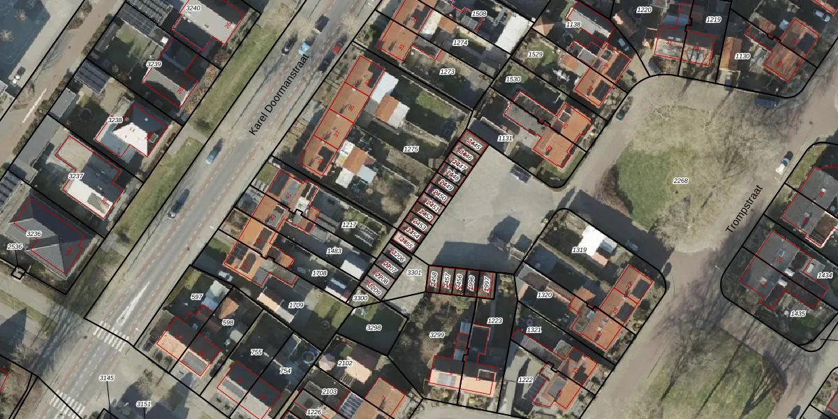 Gebruik de zoekbalk of klik op een perceel voor informatie over de adressen binnen dit perceel.