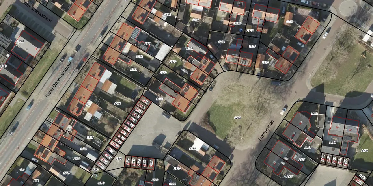 Het perceel waarop Trompstraat 25 staat heeft een oppervlakte van 240 m². Dit is een middelgroot perceel. De perceeloppervlakte wordt geregistreerd door het Kadaster. Gedetailleerde informatie over de maten van dit perceel kunt u vinden in het rapport Kadastrale kaart met maatvoering van Trompstraat 25.