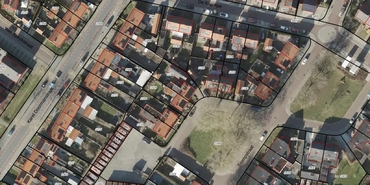 Het perceel waarop Trompstraat 29 staat heeft een oppervlakte van 306 m². Dit is een groot perceel. De perceeloppervlakte wordt geregistreerd door het Kadaster. Gedetailleerde informatie over de maten van dit perceel kunt u vinden in het rapport Kadastrale kaart met maatvoering van Trompstraat 29.