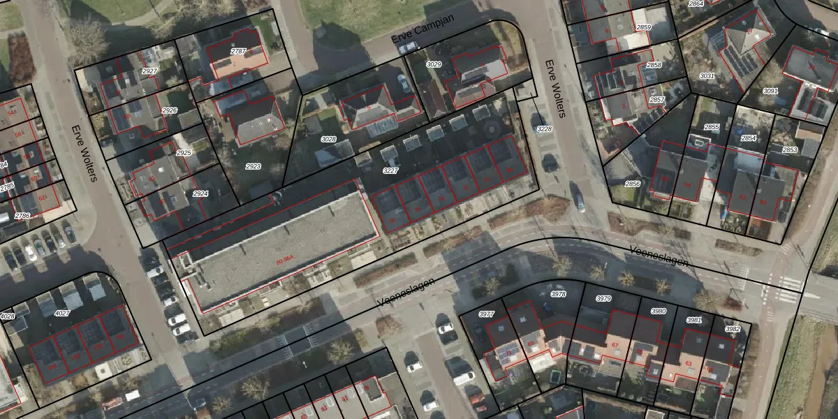 Veeneslagen 76 is gelegen op kadastraal perceel RSN01E3227. Deze kadastrale aanduiding is uniek en wordt gebruikt door het Kadaster om eigendomsrechten en andere zakelijke rechten vast te leggen. Het perceel maakt onderdeel uit van de kadastrale gemeente Rijssen.