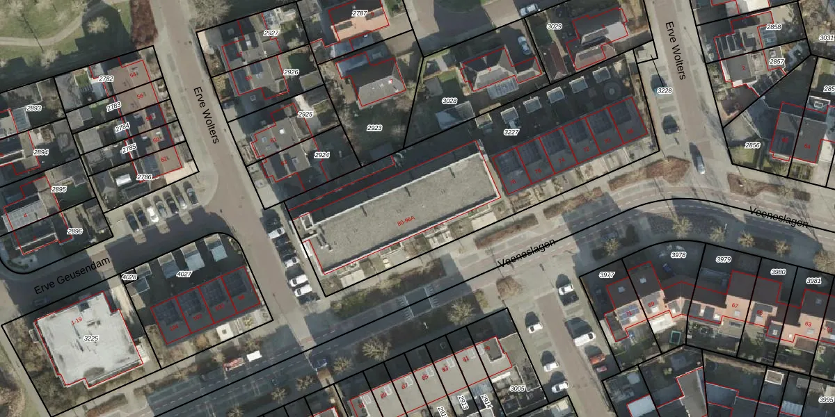 Veeneslagen 86 is gelegen op kadastraal perceel RSN01E3227. Deze kadastrale aanduiding is uniek en wordt gebruikt door het Kadaster om eigendomsrechten en andere zakelijke rechten vast te leggen. Het perceel maakt onderdeel uit van de kadastrale gemeente Rijssen.