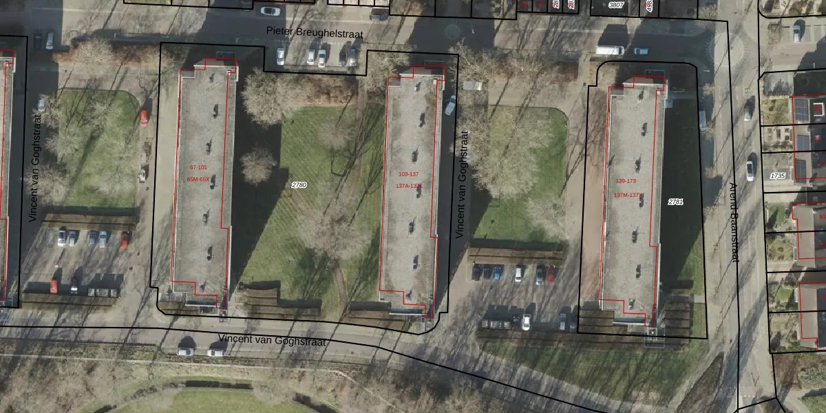 Vincent van Goghstraat 107 is gelegen op kadastraal perceel RSN01H2780. Deze kadastrale aanduiding is uniek en wordt gebruikt door het Kadaster om eigendomsrechten en andere zakelijke rechten vast te leggen. Het perceel maakt onderdeel uit van de kadastrale gemeente Rijssen.