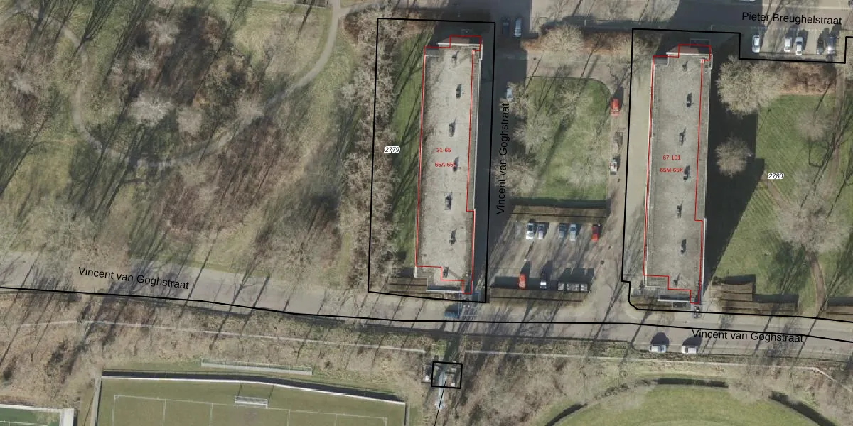 Het perceel waarop Vincent van Goghstraat 57 staat heeft een oppervlakte van 1797 m². Dit is een zeer groot perceel. De perceeloppervlakte wordt geregistreerd door het Kadaster. Gedetailleerde informatie over de maten van dit perceel kunt u vinden in het rapport Kadastrale kaart met maatvoering van Vincent van Goghstraat 57.