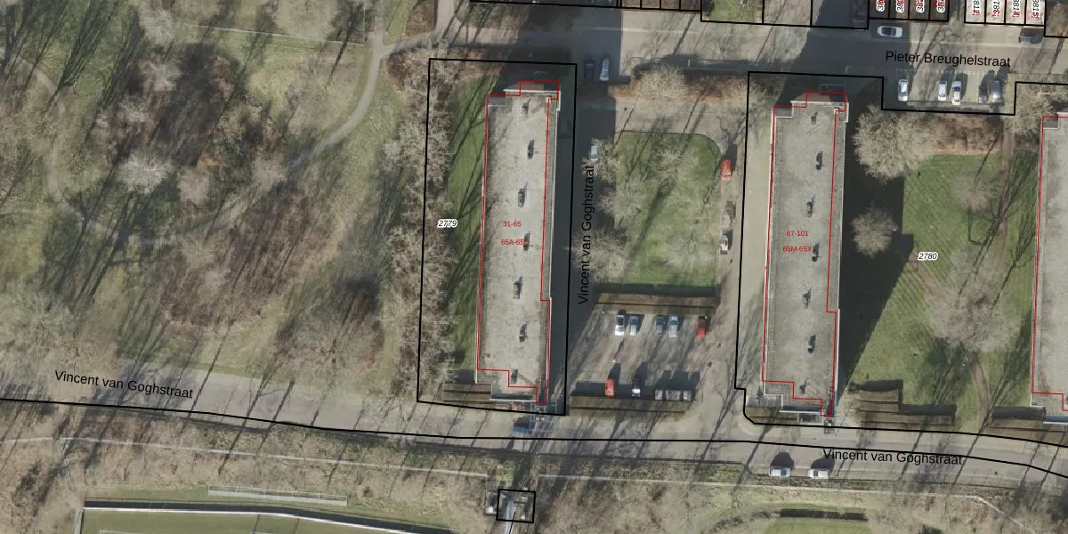 Vincent van Goghstraat 65-E is gelegen op kadastraal perceel RSN01H2779. Deze kadastrale aanduiding is uniek en wordt gebruikt door het Kadaster om eigendomsrechten en andere zakelijke rechten vast te leggen. Het perceel maakt onderdeel uit van de kadastrale gemeente Rijssen.