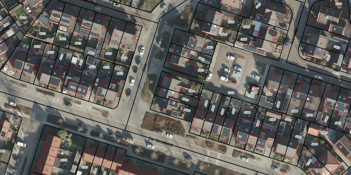 Gebruik de zoekbalk of klik op een perceel voor informatie over de adressen binnen dit perceel.