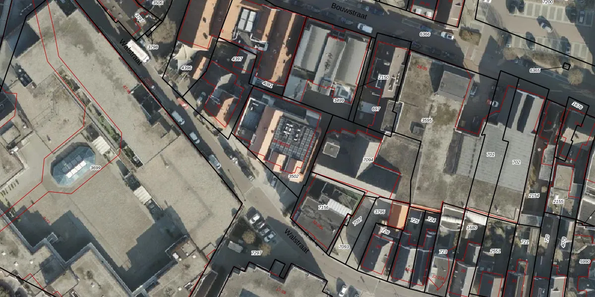 Het perceel waarop Walstraat 38-101 staat heeft een oppervlakte van 703 m². Dit is een groot perceel. De perceeloppervlakte wordt geregistreerd door het Kadaster. Gedetailleerde informatie over de maten van dit perceel kunt u vinden in het rapport Kadastrale kaart met maatvoering van Walstraat 38-101.
