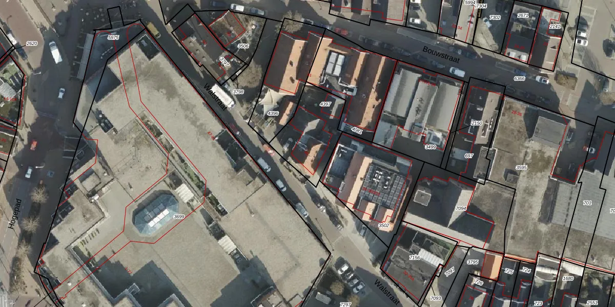 Gebruik de zoekbalk of klik op een perceel voor informatie over de adressen binnen dit perceel.