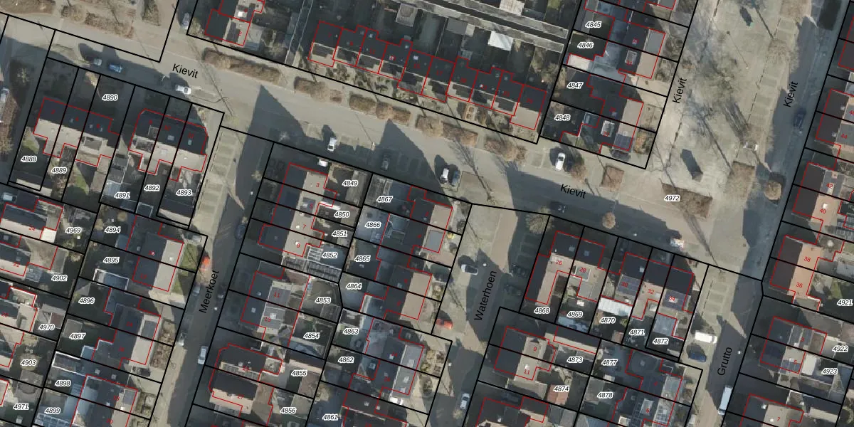 Het perceel waarop Waterhoen 2 staat heeft een oppervlakte van 184 m². Dit is een middelgroot perceel. De perceeloppervlakte wordt geregistreerd door het Kadaster. Gedetailleerde informatie over de maten van dit perceel kunt u vinden in het rapport Kadastrale kaart met maatvoering van Waterhoen 2.