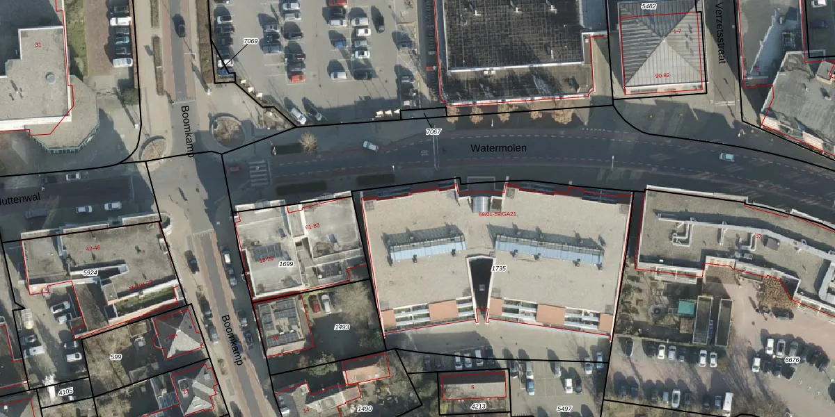 Het perceel waarop Watermolen 59-02 staat heeft een oppervlakte van 2546 m². Dit is een zeer groot perceel. De perceeloppervlakte wordt geregistreerd door het Kadaster. Gedetailleerde informatie over de maten van dit perceel kunt u vinden in het rapport Kadastrale kaart met maatvoering van Watermolen 59-02.