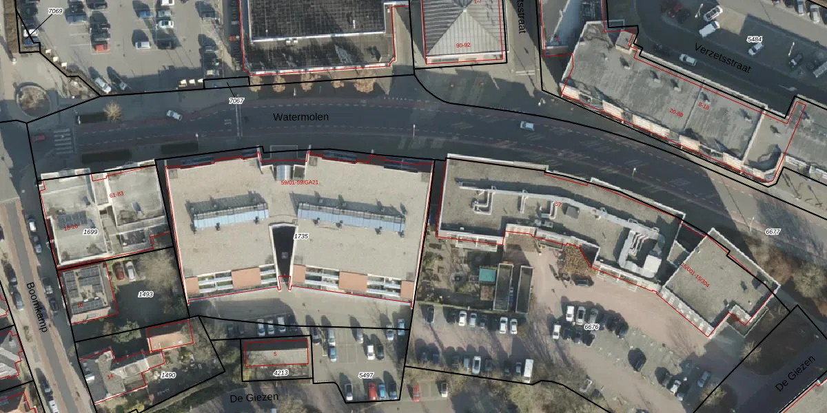 Het perceel waarop Watermolen 59-211 staat heeft een oppervlakte van 2546 m². Dit is een zeer groot perceel. De perceeloppervlakte wordt geregistreerd door het Kadaster. Gedetailleerde informatie over de maten van dit perceel kunt u vinden in het rapport Kadastrale kaart met maatvoering van Watermolen 59-211.