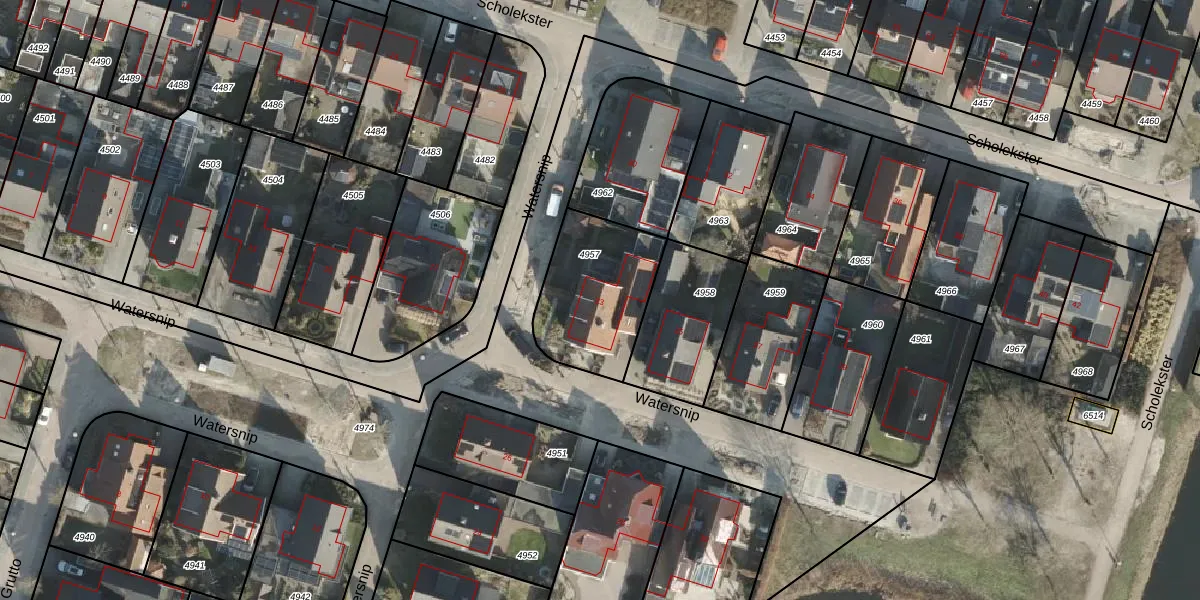 Gebruik de zoekbalk of klik op een perceel voor informatie over de adressen binnen dit perceel.