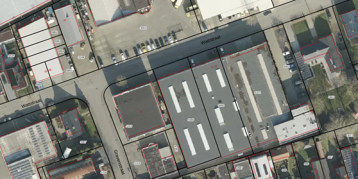 Het perceel waarop Wattstraat 15 staat heeft een oppervlakte van 1188 m². Dit is een zeer groot perceel. De perceeloppervlakte wordt geregistreerd door het Kadaster. Gedetailleerde informatie over de maten van dit perceel kunt u vinden in het rapport Kadastrale kaart met maatvoering van Wattstraat 15.