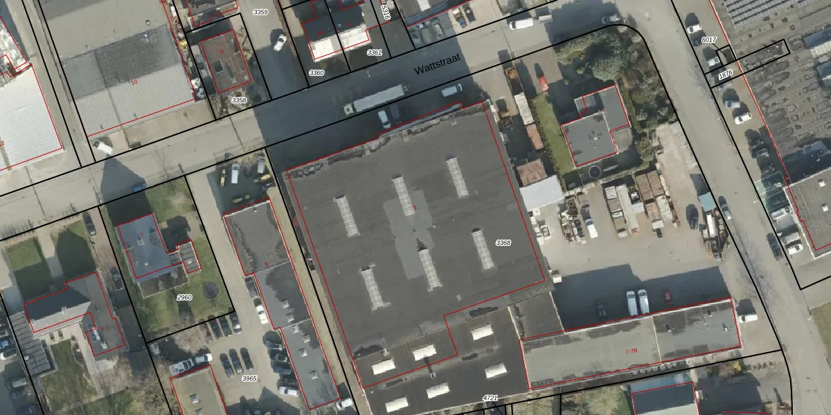 Het perceel waarop Wattstraat 3 staat heeft een oppervlakte van 7800 m². Dit is een zeer groot perceel. De perceeloppervlakte wordt geregistreerd door het Kadaster. Gedetailleerde informatie over de maten van dit perceel kunt u vinden in het rapport Kadastrale kaart met maatvoering van Wattstraat 3.