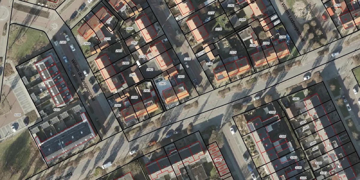 Gebruik de zoekbalk of klik op een perceel voor informatie over de adressen binnen dit perceel.
