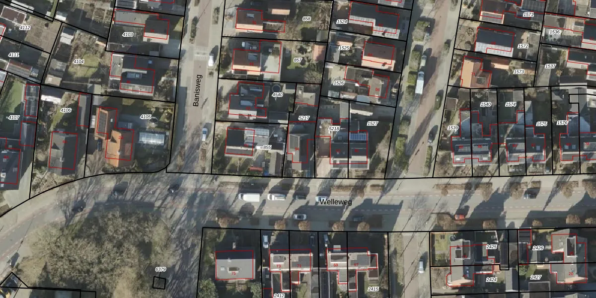 Gebruik de zoekbalk of klik op een perceel voor informatie over de adressen binnen dit perceel.