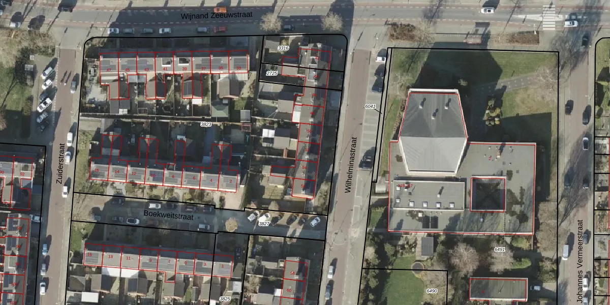 Het perceel waarop Wilhelminastraat 52 staat heeft een oppervlakte van 4232 m². Dit is een zeer groot perceel. De perceeloppervlakte wordt geregistreerd door het Kadaster. Gedetailleerde informatie over de maten van dit perceel kunt u vinden in het rapport Kadastrale kaart met maatvoering van Wilhelminastraat 52.