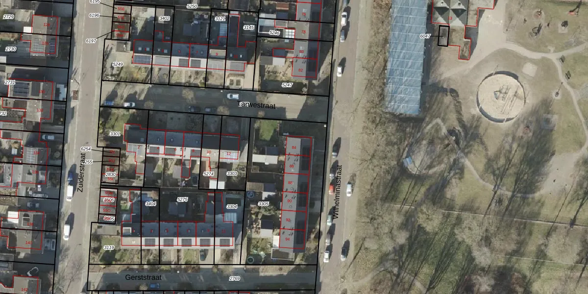 Het perceel waarop Wilhelminastraat 84 staat heeft een oppervlakte van 1283 m². Dit is een zeer groot perceel. De perceeloppervlakte wordt geregistreerd door het Kadaster. Gedetailleerde informatie over de maten van dit perceel kunt u vinden in het rapport Kadastrale kaart met maatvoering van Wilhelminastraat 84.
