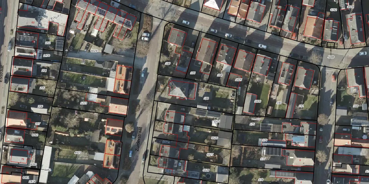 Gebruik de zoekbalk of klik op een perceel voor informatie over de adressen binnen dit perceel.