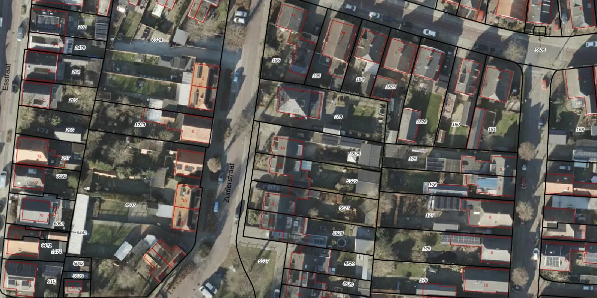Zuiderstraat 1-A is gelegen op kadastraal perceel RSN01H5525. Deze kadastrale aanduiding is uniek en wordt gebruikt door het Kadaster om eigendomsrechten en andere zakelijke rechten vast te leggen. Het perceel maakt onderdeel uit van de kadastrale gemeente Rijssen.