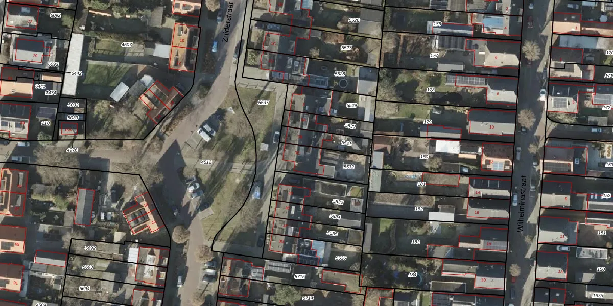Gebruik de zoekbalk of klik op een perceel voor informatie over de adressen binnen dit perceel.