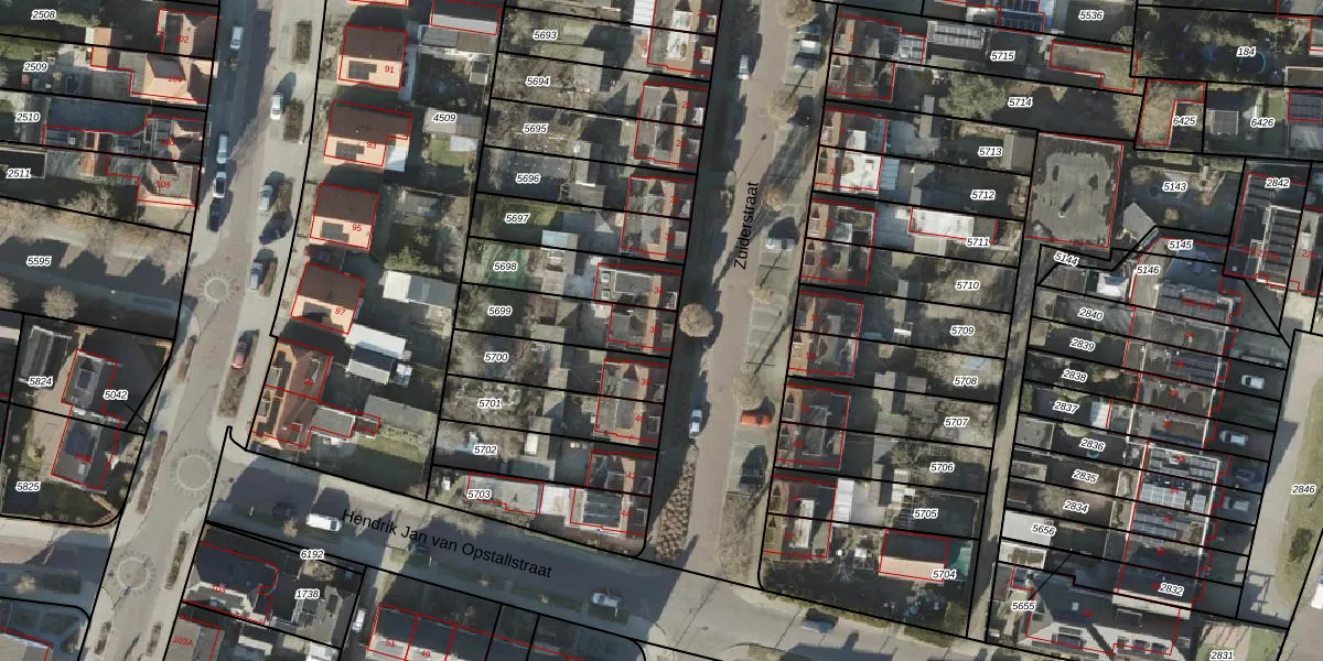 Gebruik de zoekbalk of klik op een perceel voor informatie over de adressen binnen dit perceel.