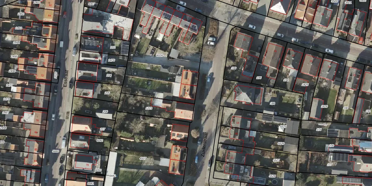 Het perceel waarop Zuiderstraat 4 staat heeft een oppervlakte van 2033 m². Dit is een zeer groot perceel. De perceeloppervlakte wordt geregistreerd door het Kadaster. Gedetailleerde informatie over de maten van dit perceel kunt u vinden in het rapport Kadastrale kaart met maatvoering van Zuiderstraat 4.