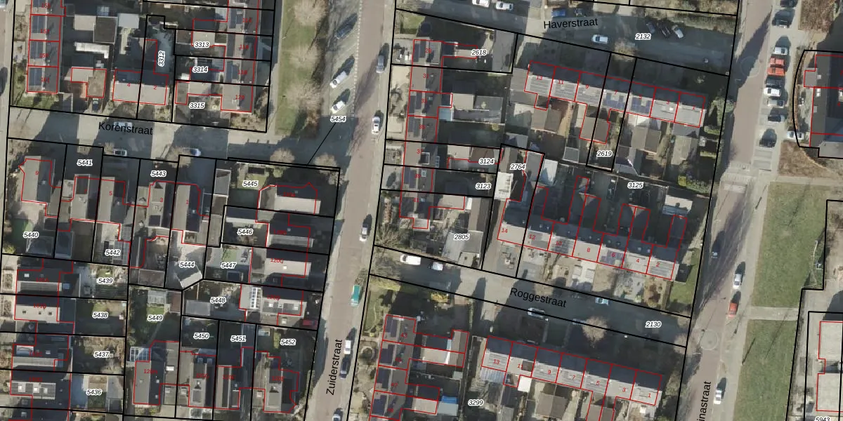 Gebruik de zoekbalk of klik op een perceel voor informatie over de adressen binnen dit perceel.