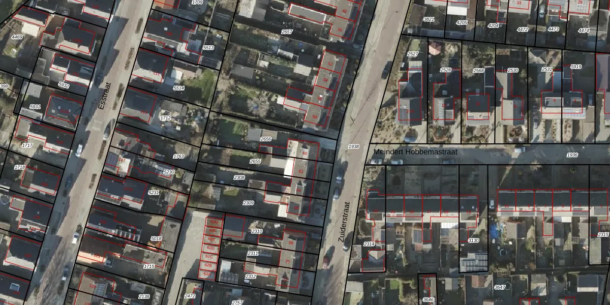 Het perceel waarop Zuiderstraat 60 staat heeft een oppervlakte van 410 m². Dit is een groot perceel. De perceeloppervlakte wordt geregistreerd door het Kadaster. Gedetailleerde informatie over de maten van dit perceel kunt u vinden in het rapport Kadastrale kaart met maatvoering van Zuiderstraat 60.