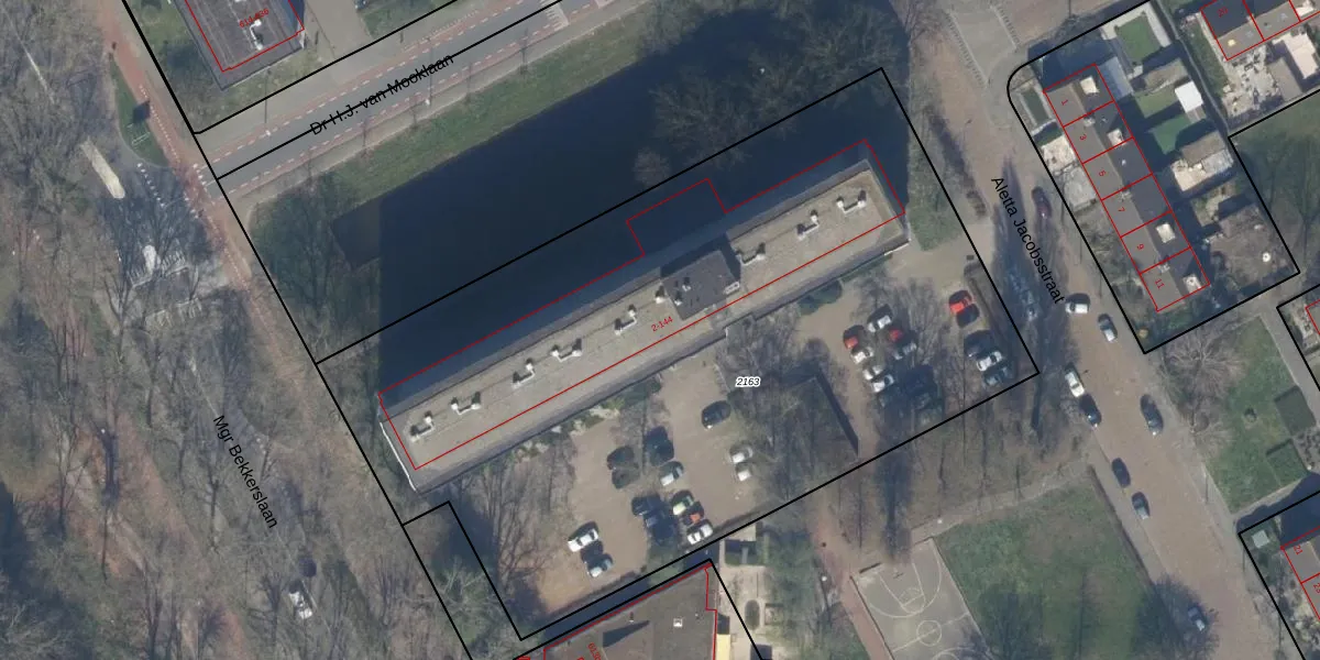 Aletta Jacobsstraat 90 is gelegen op kadastraal perceel RWK01I2163. Deze kadastrale aanduiding is uniek en wordt gebruikt door het Kadaster om eigendomsrechten en andere zakelijke rechten vast te leggen. Het perceel maakt onderdeel uit van de kadastrale gemeente Rijswijk.