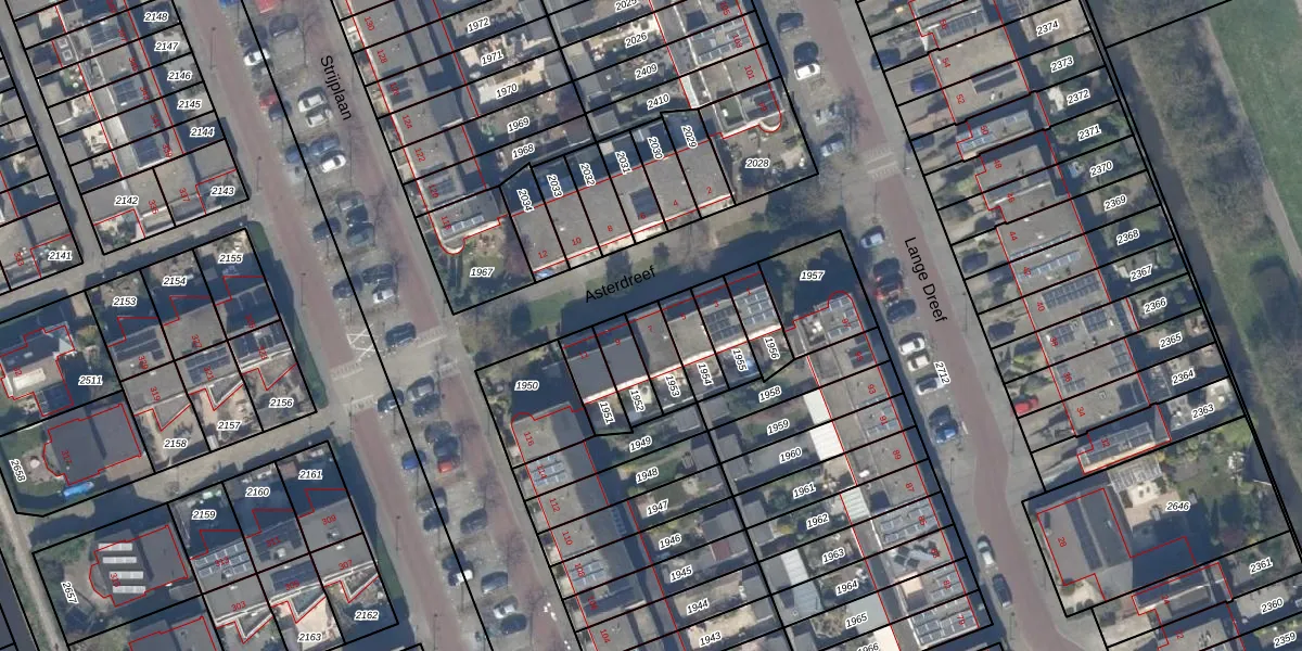 Gebruik de zoekbalk of klik op een perceel voor informatie over de adressen binnen dit perceel.