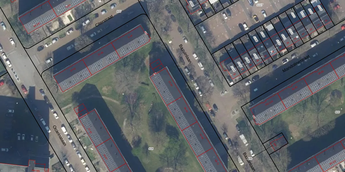 Het perceel waarop Bazuinlaan 12 staat heeft een oppervlakte van 9908 m². Dit is een zeer groot perceel. De perceeloppervlakte wordt geregistreerd door het Kadaster. Gedetailleerde informatie over de maten van dit perceel kunt u vinden in het rapport Kadastrale kaart met maatvoering van Bazuinlaan 12.