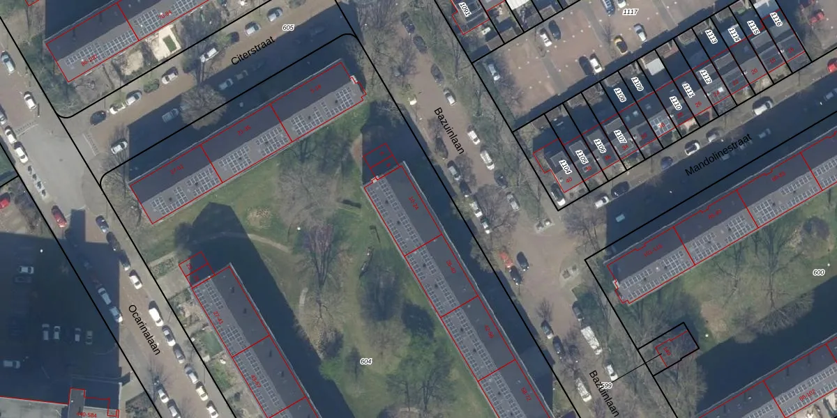 Het adres is gelegen op perceel 604 in de sectie H en de kadastrale gemeente Rijswijk. De kadastrale aanduiding is aldus RWK01-H-604. De oppervlakte van het perceel is 9908 m². Dat is groter dan gemiddeld in Rijswijk, waar de gemiddelde perceeloppervlakte op 1114,26 m² ligt. De grootste perceeloppervlakte in de kadastrale gemeente is 44,3 ha. De kleinste oppervlakte bedraagt 0 m². Er zijn 121 adressen aanwezig op het perceel. De huidige grenzen van het perceel zijn digitaal in de Basisregistratie Kadaster (BRK) geregistreerd op 19-02-2003.